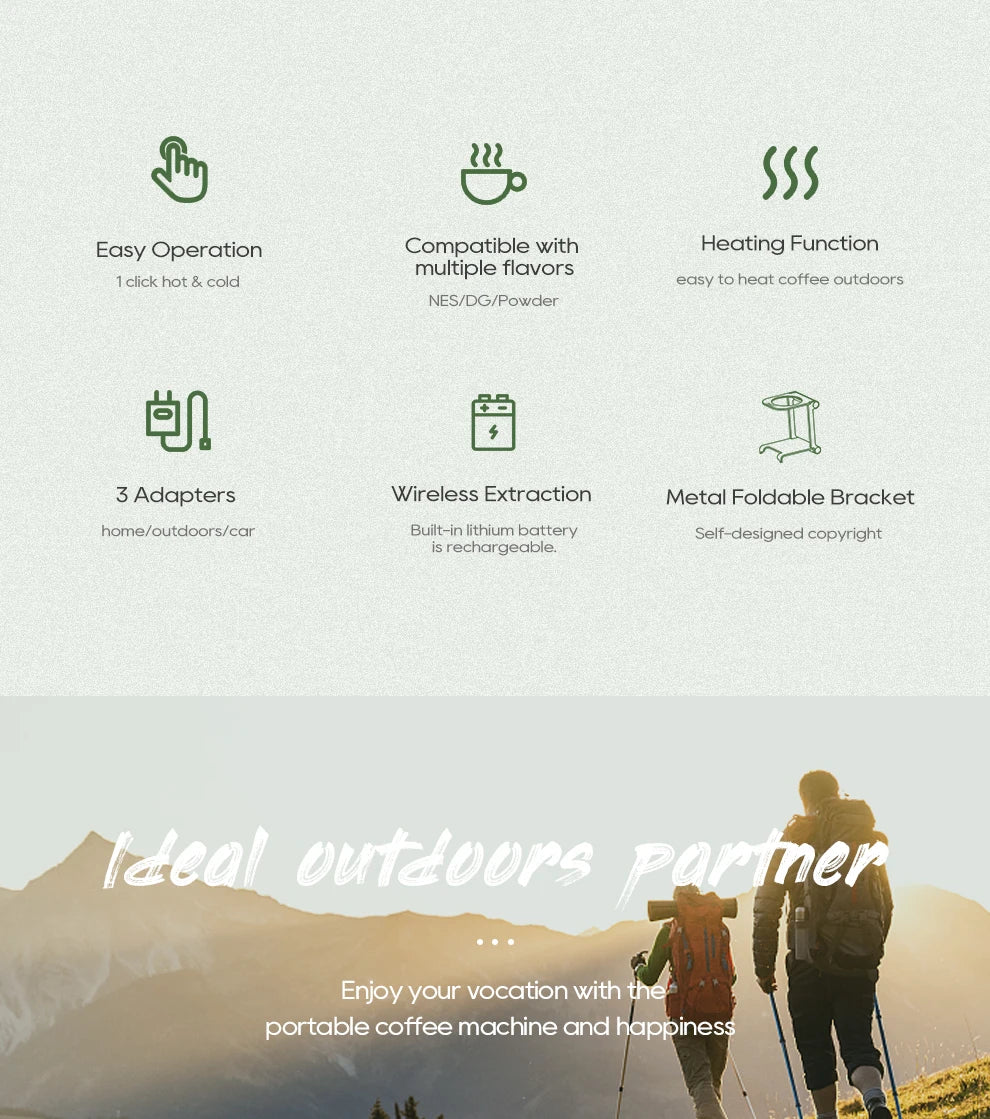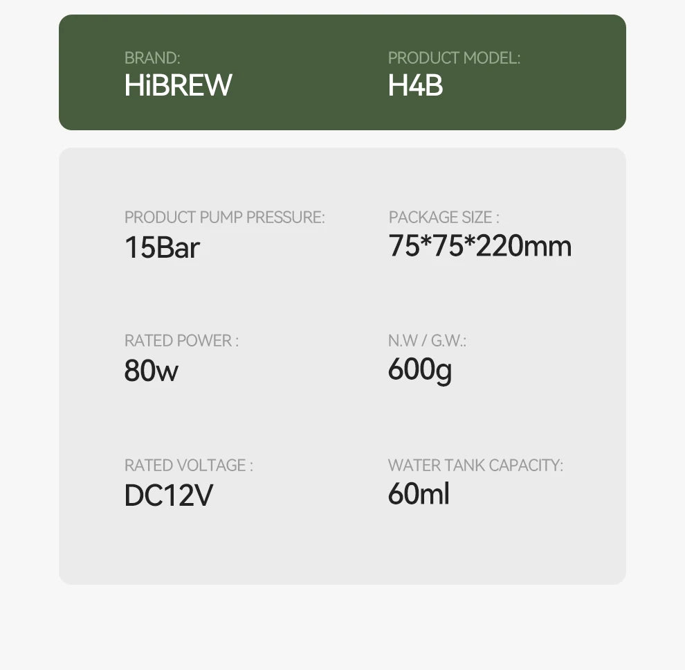 HiBREW Wireless Electric Portable Espresso Coffee Machine for Car & Home Camping Coffee Maker Fit Nespresso Dolce Capsule Powder - H4B GN / United States / US