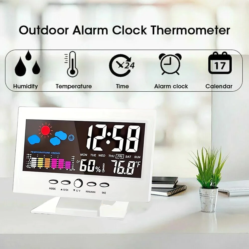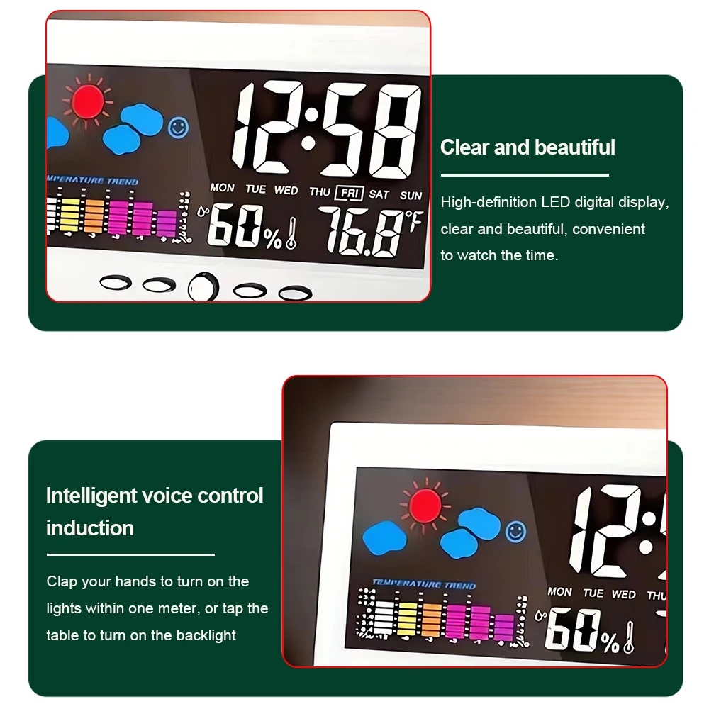 【2025 Upgraded】Digital Weather Station Thermometer Hygrometer Clock - Temp Humidity Monitor Calendar Trend Alarm Comfort Level |