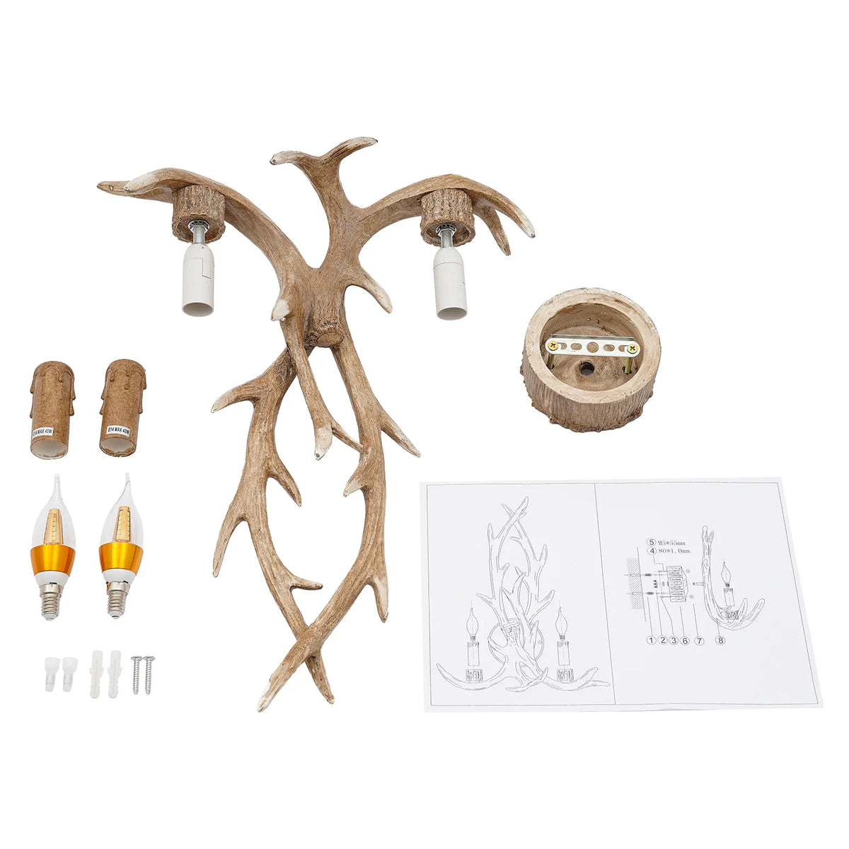 Bymaocar Energy-Efficient LED Antler Wall Lamp, E14 Bulb Base, Indoor Lighting Fixture for 32.29-53.82ft², Bedroom & Hotel Decor