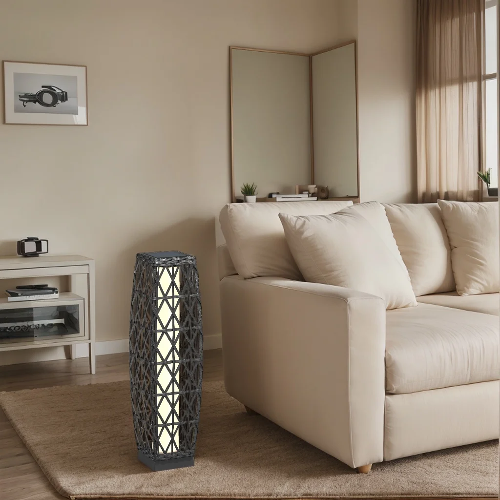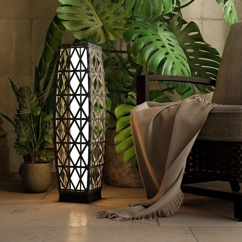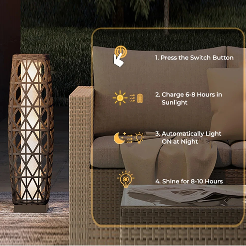 Cindy Solar Floor Lamp ,Outdoor Wicker Lantern Decoration Light for Patio Deck Garden Lawn Porch And Festival Celebration - Dimension Medium / United States