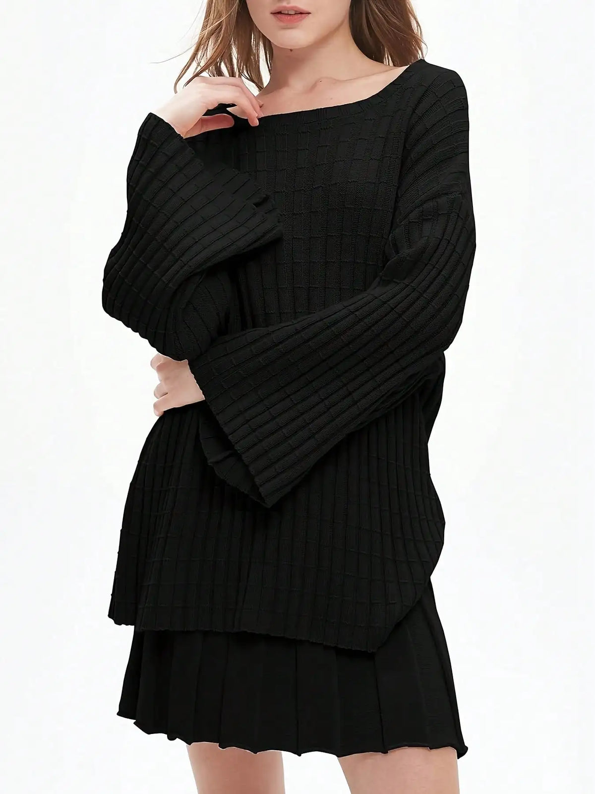 Features: long sleeve, wide boat neckline, solid color, dropped shoulder seams, A-line mini skirt, cute pleated, high-rise design, pull on. Womens ribbed knit dress women definitely will get compliments every time you wear it. This set has endless ways to wear.